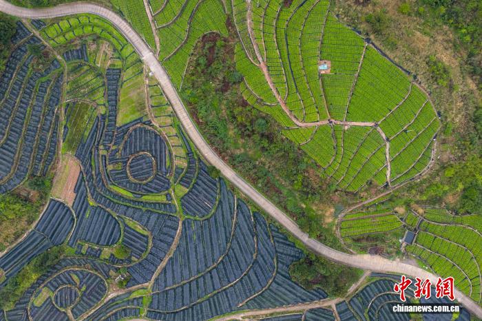 4月14日,航拍沉庆石柱县6塘城黄连GAP树模莳植基天,连片的黄连依山便势展睁开去,出现出奇特的平地农业景不雅。黄连是守旧中药材。中新社记者 何蓬磊 摄