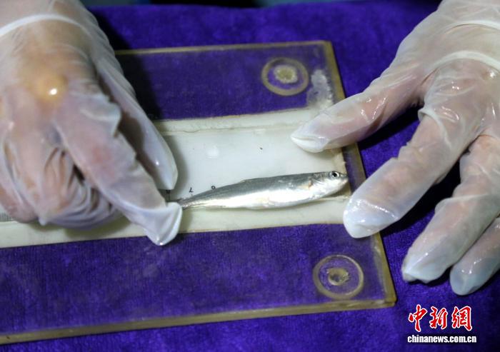 4月14日,青海西宁,青海湖裸鲤救护重心任务职员正正在抽样丈量养殖的裸鲤。中新社记者 弛忠苹 摄